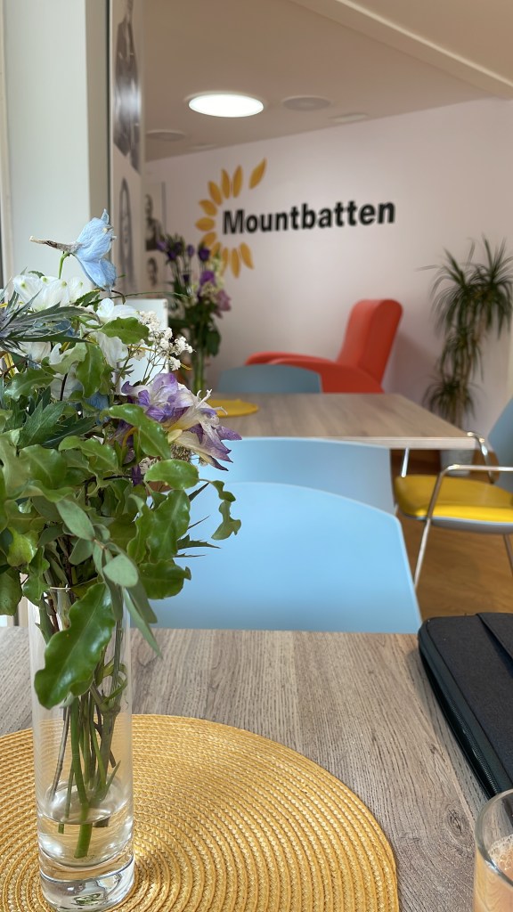 Normal powers, normal day… In a film about Mountbatten, released in the week Tia visited (Your Mountbatten Stories), six people who have personally experienced Mountbatten’s care, either for themselves or someone they love, speak about that experience. One of them describes how, as he sees it, the folks at this hospice, ‘really do love what they do. You can tell. The nurses, the doctors, the volunteers…’