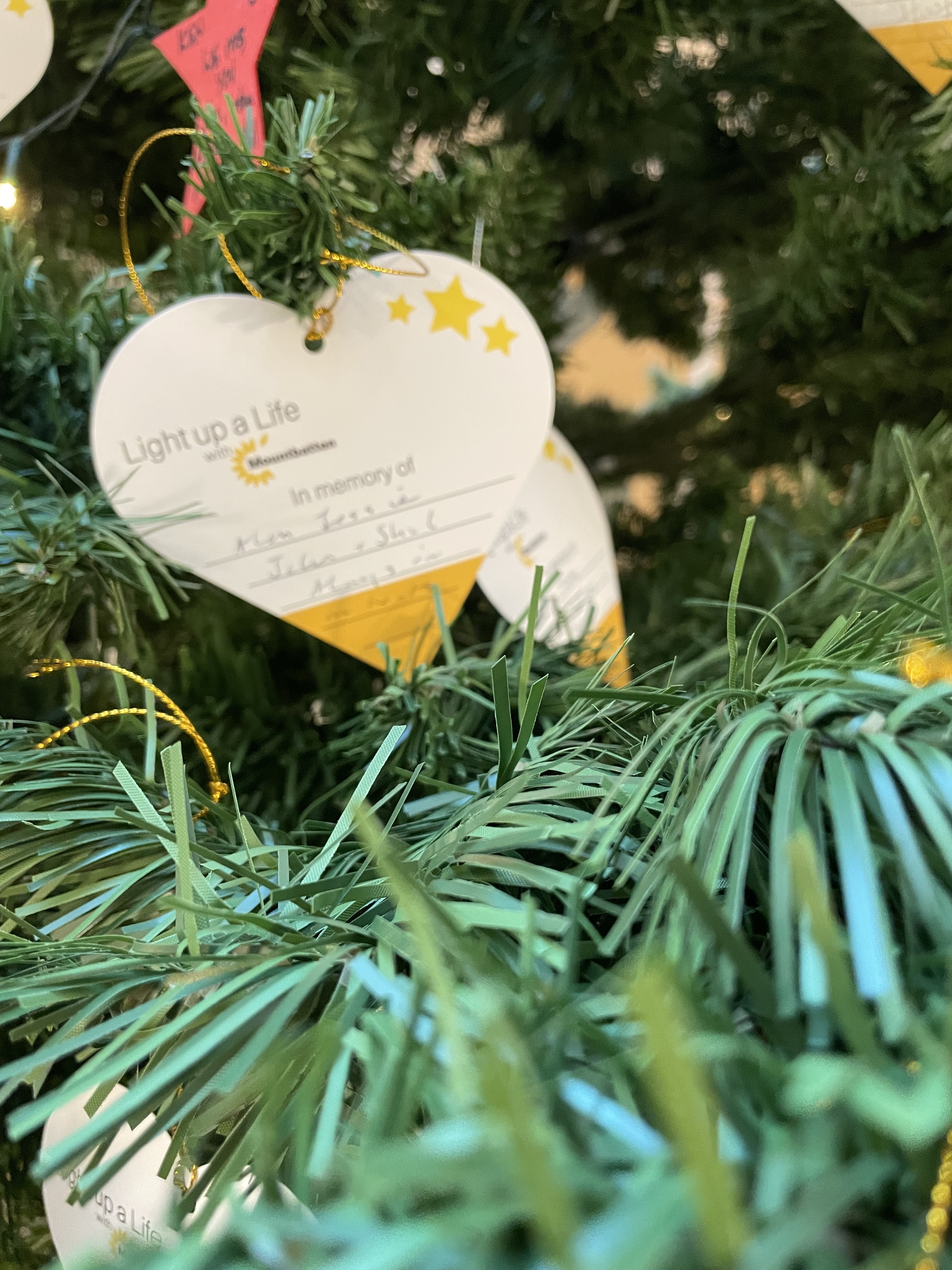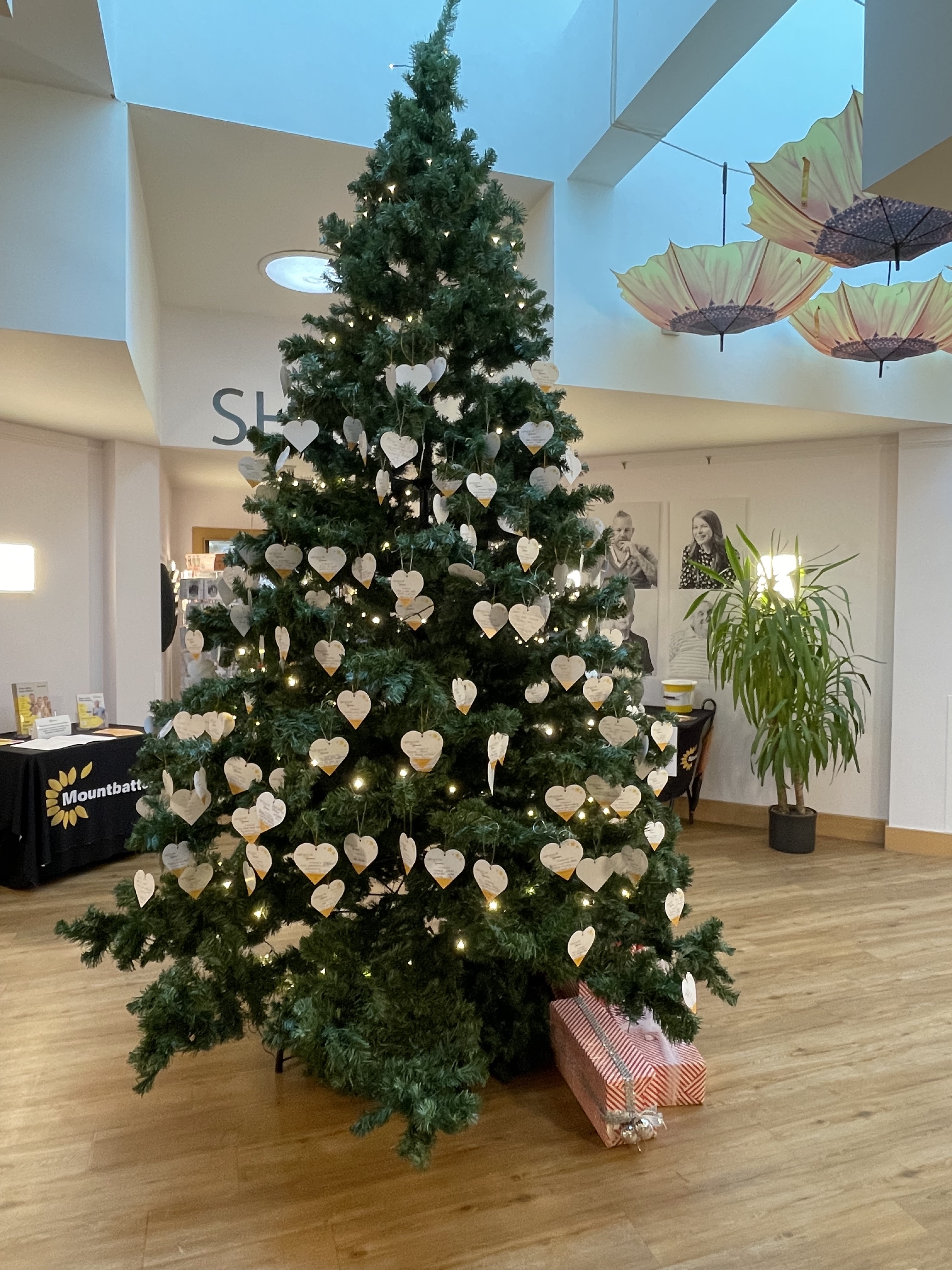 Inside the largest of those trees is bedecked with individual messages of remembrance, part of Mountbatten’s annual, Light up a Life event… Tia made a rough count and came up with a total of 231. Most of these cards name a person or people, lovingly remembered. Sometimes a card will include a little more, for example, a drawing or very short comment, as much as can be held on one small, heart-shaped card.